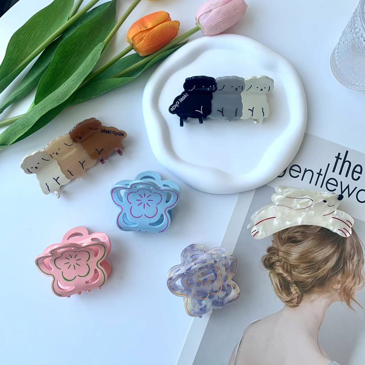 Discover the delightful Acetate Five Petal Flower Grip Line Dance Hollow Out, the ultimate accessory designed for women who appreciate both style and functionality. Made from high-quality acetic acid, this charming flower grip clip is a lightweight and durable addition to your hair accessory collection. Its unique cartoon-inspired design features a vibrant running rabbit motif, making it not only practical but also an eye-catching piece that'll turn heads.