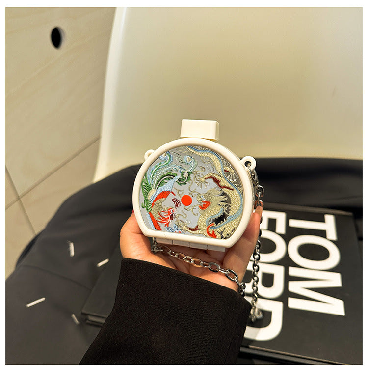 Introducing the stunning Acrylic Evening Bag Mini Chain Accessories, the perfect addition to your stylish ensemble. Designed for the modern woman, this elegant mini bag combines both functionality and charm, ensuring you can carry your essentials while standing out in any crowd. Its unique round suitcase shape adds a touch of whimsy, making it a standout piece for various occasions, from dinner dates to evening galas.