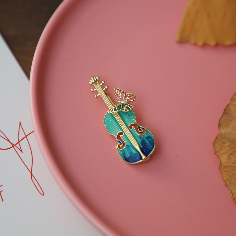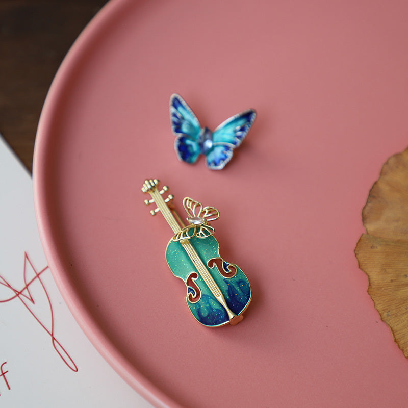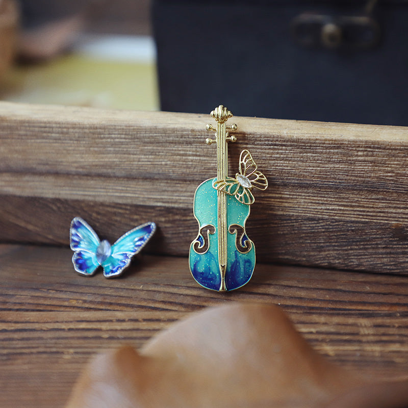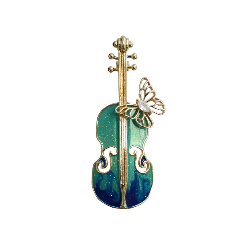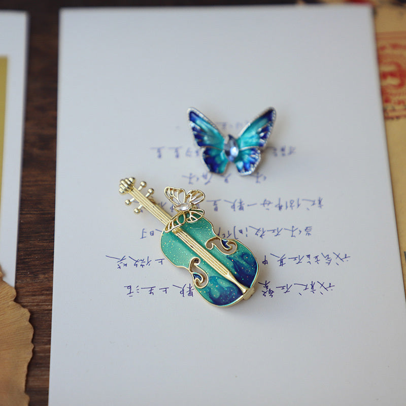 Featuring two unique designs - a delicate butterfly and a charming violin - this brooch allows you to express your personality. The butterfly design measures 2.5X2.3CM while the violin adds a musical touch at 5X1.8CM, making it an eye-catching accessory for any occasion.