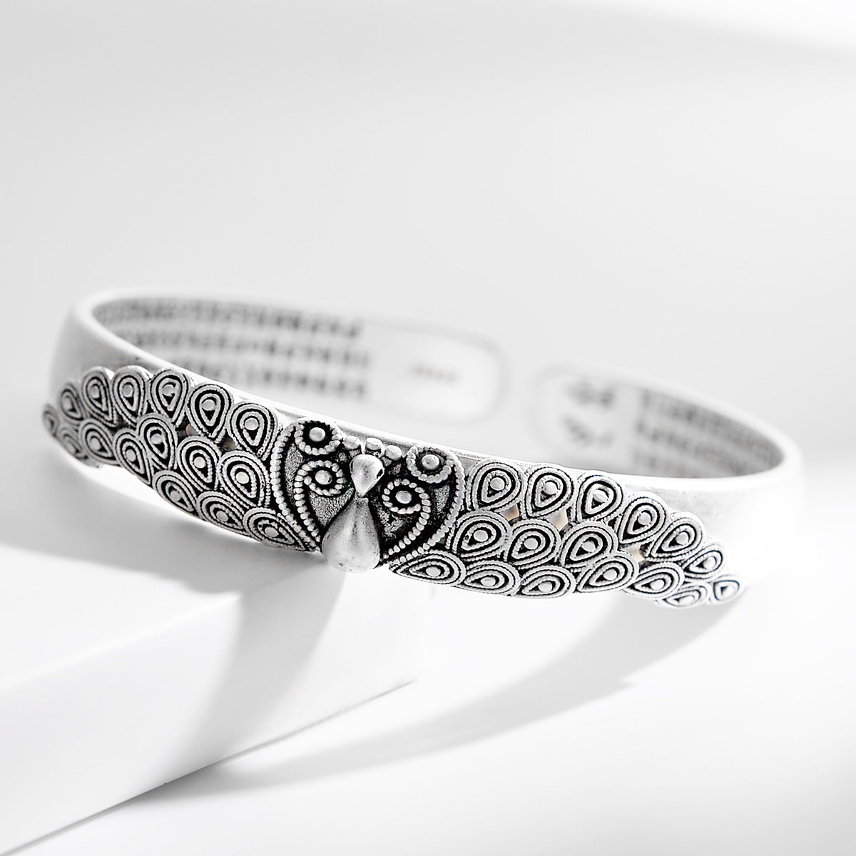The exquisite peacock open screen design captures the essence of nature's beauty, providing a breathtaking visual that will surely catch everyone's eye. This bracelet combines traditional aesthetics with a modern twist, ensuring it complements a variety of outfits. The rich copper plating adds depth and warmth, making it a versatile accessory that can be worn with casual or formal attire alike.