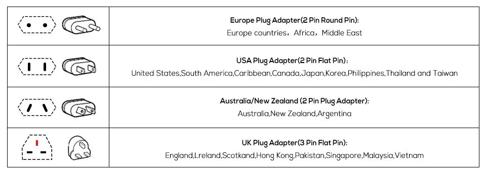 Adapter: The default is sent to the European standard charger, if you have special requirements, please leave a message on the order.