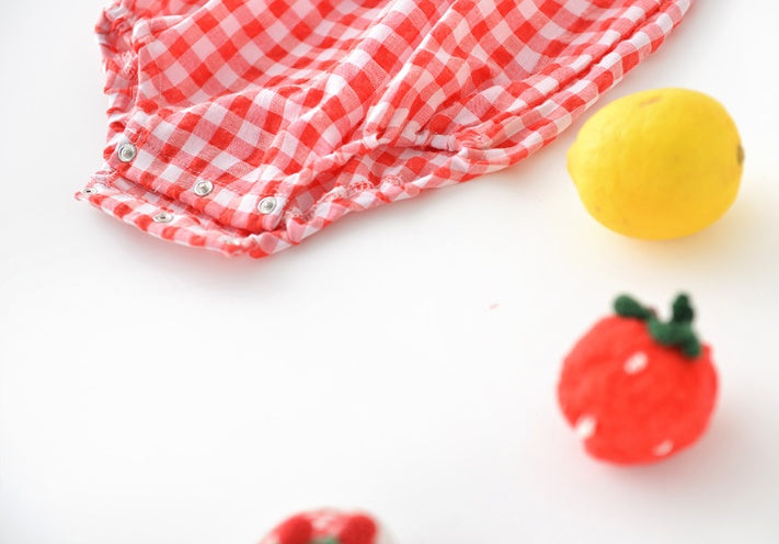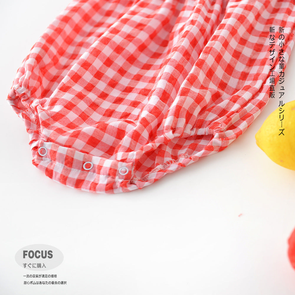 Baby plaid lace sleeves baby triangle romper baby kite clothes