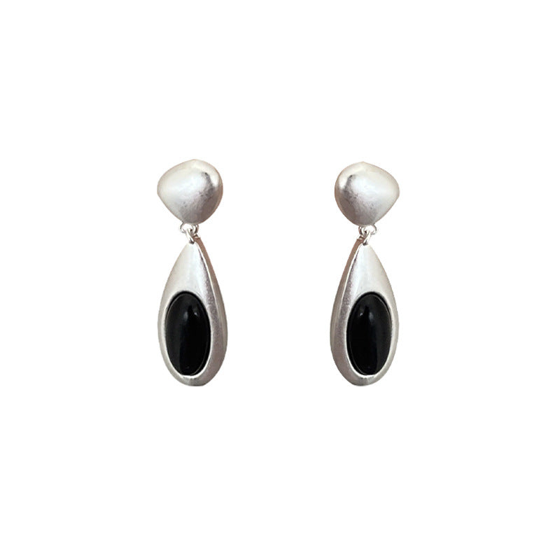 The earrings come in two eye-catching color options: bold black and pristine white. Both styles feature a stylish oval water drop shape that beautifully flatters your neckline. Their geometric design lends a contemporary flair, making them suitable for both casual outings and formal occasions.