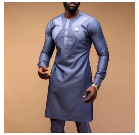 Blue Youth Stand Up Collar Casual Slim Fit Shirt