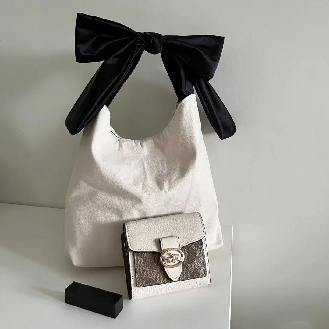 Introducing the Bowknot Canvas Handbag Casual Shoulder Bag, your new go-to accessory for every occasion! This stylish handbag combines functionality and fashion, making it perfect for casual outings, shopping, or everyday use. Crafted from durable canvas, this handbag offers both a chic look and lasting wear. Its charming bowknot design effortlessly adds a playful yet sophisticated flair to any outfit.