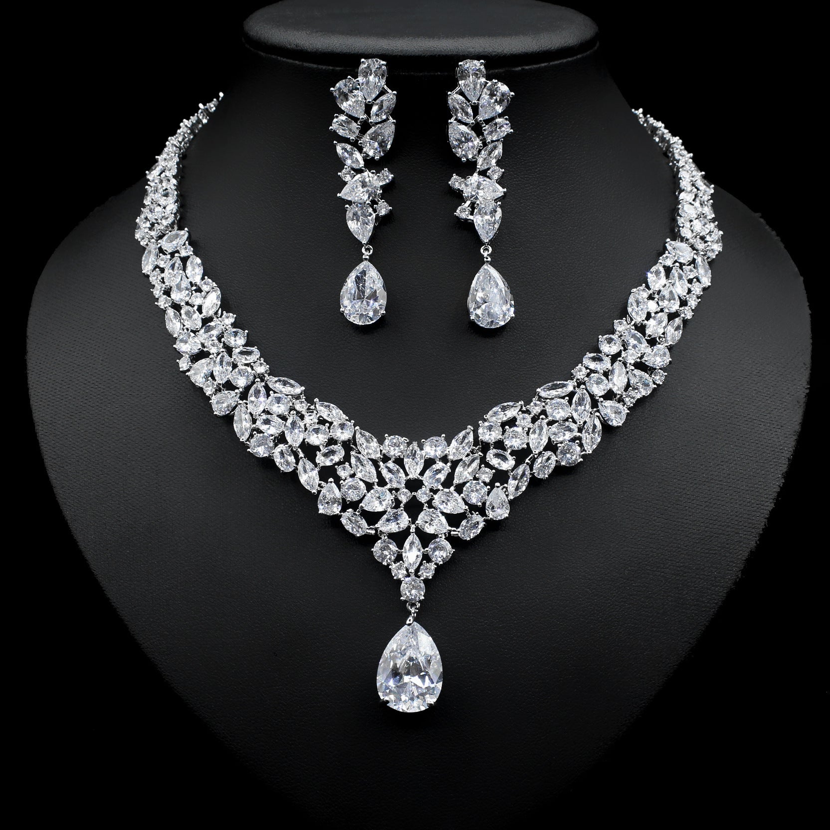 Each set comes carefully packed, featuring one pair of earrings and one stunning necklace, ready for any occasion. This Bridal Zircon Necklace and Earrings Set is an ideal choice for brides looking to add that final touch of elegance to their big day.