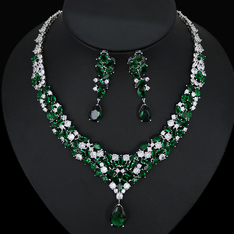 Bridal Zircon Necklace Two-piece Earrings Set
