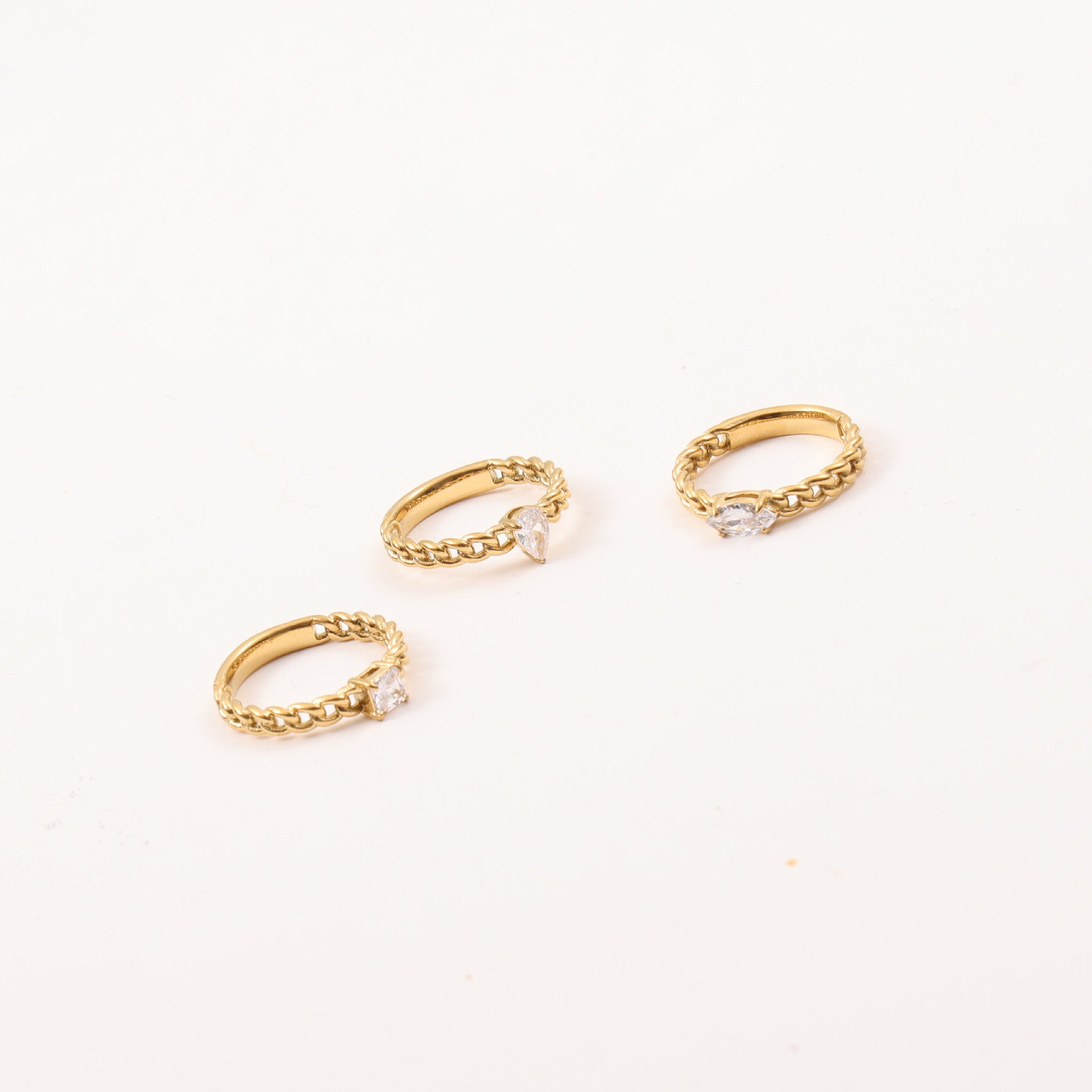 Embrace elegance and make a statement with the Gold Plated Titanium Steel Zircon Chain Ring. Get yours today!