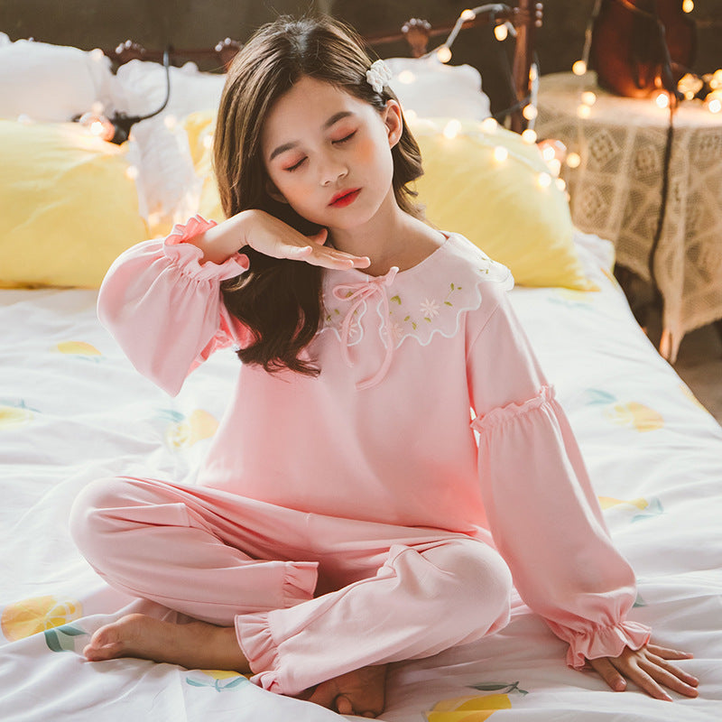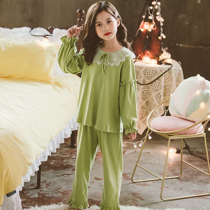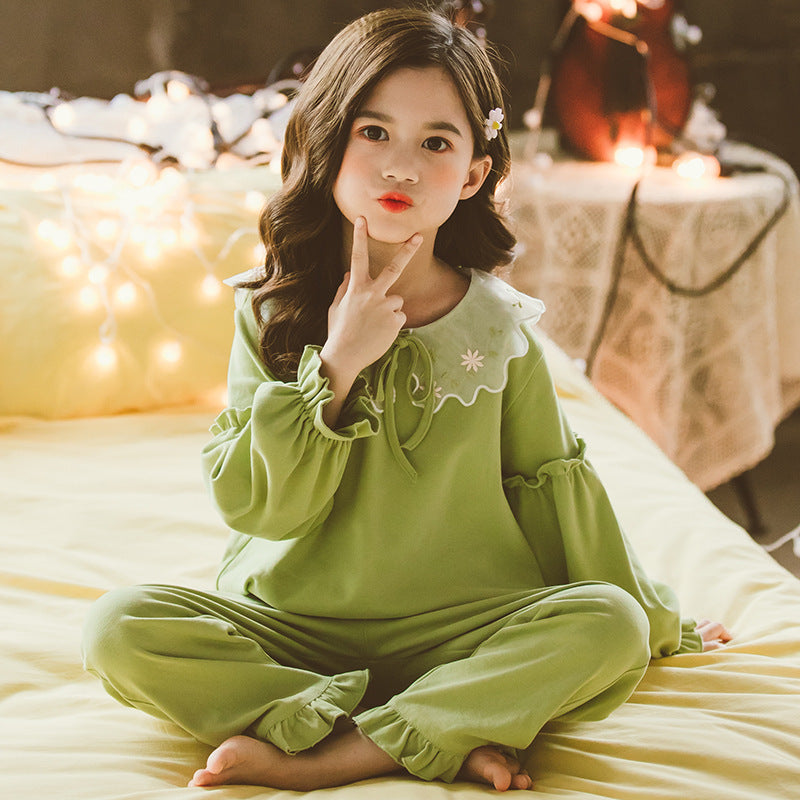 Children''s Pajamas Spring Autumn Girls'' Cotton Long Sleeve Cotton Two Piece Suit
