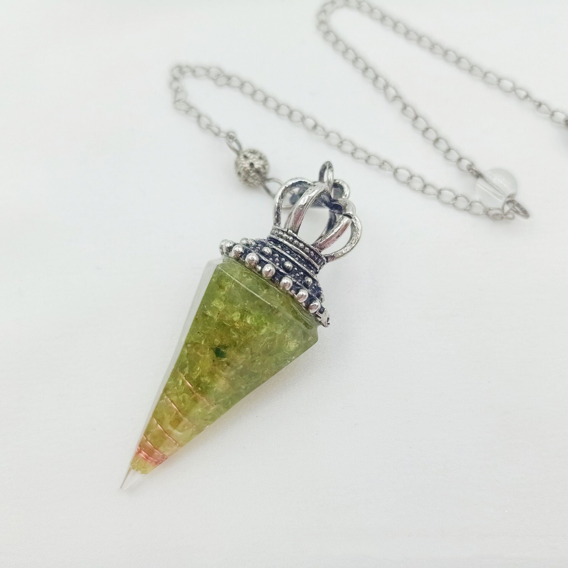 - Versatile Style: The Crystal Gravel Resin Cone Pendant can be paired with various outfits, from a simple tee to a chic dress.