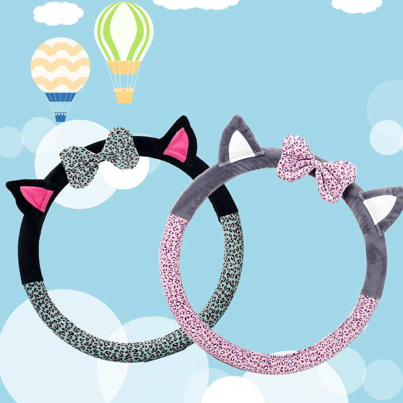 Cute Cat Ear Steering Wheel Cover Short Plush