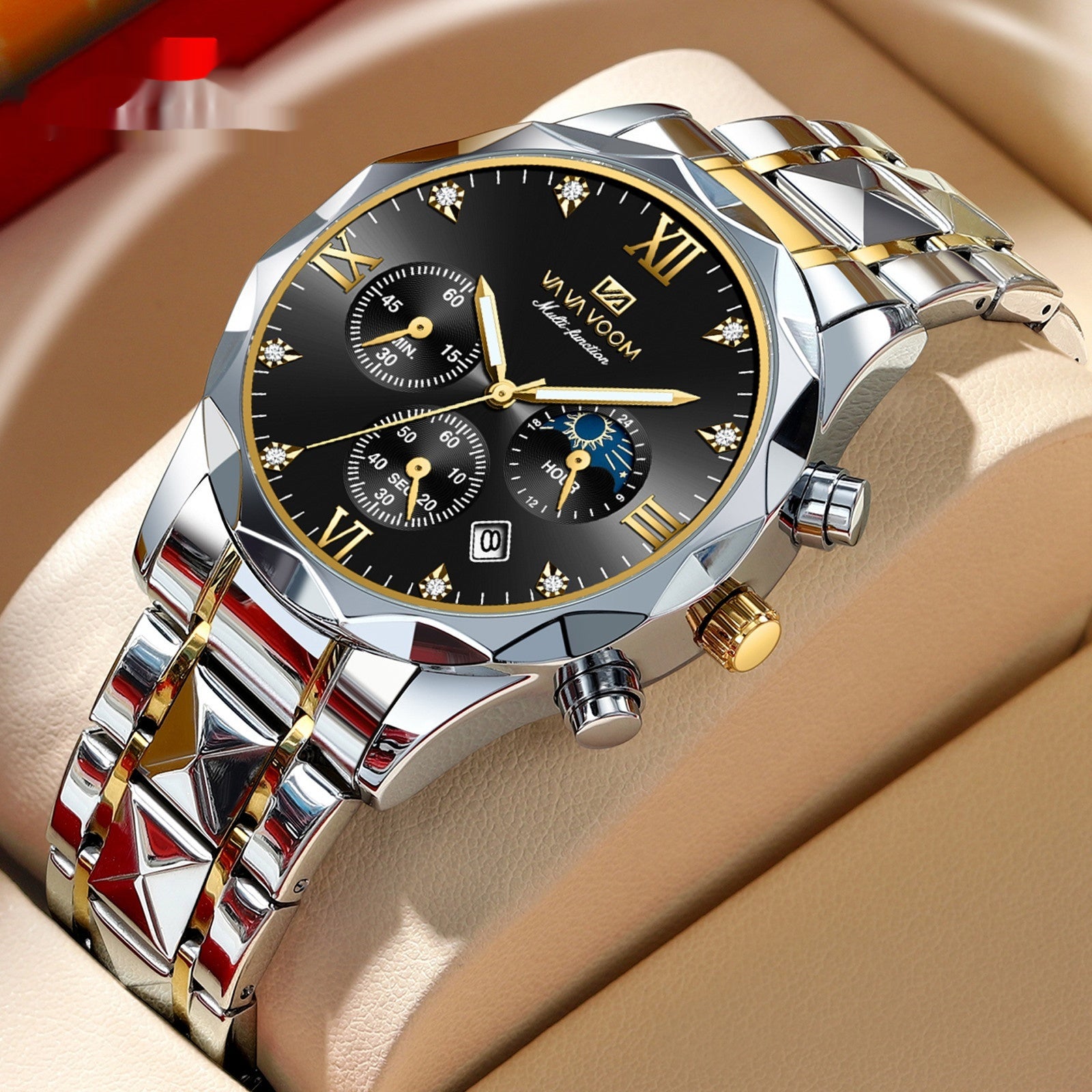 As you browse the stunning product images below, you’ll appreciate the fine details and craftsmanship that go into each timepiece. Discover how this Double Calendar Tungsten Steel Waterproof Quartz Watch can elevate your style and keep you punctual.