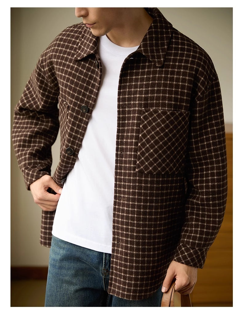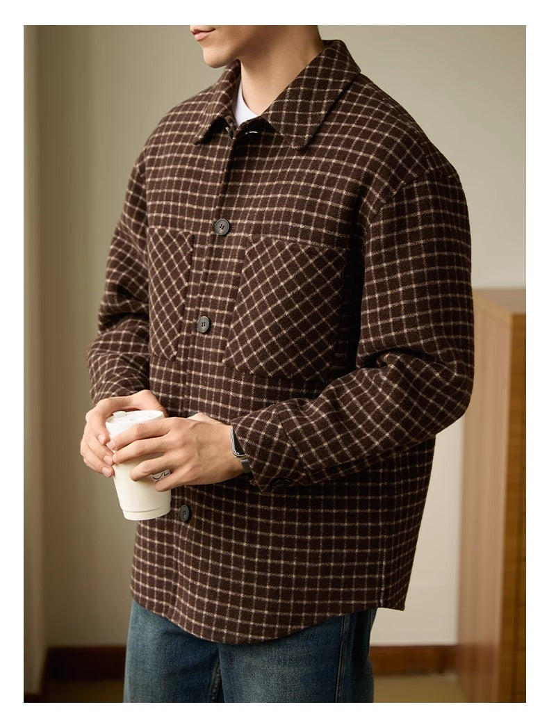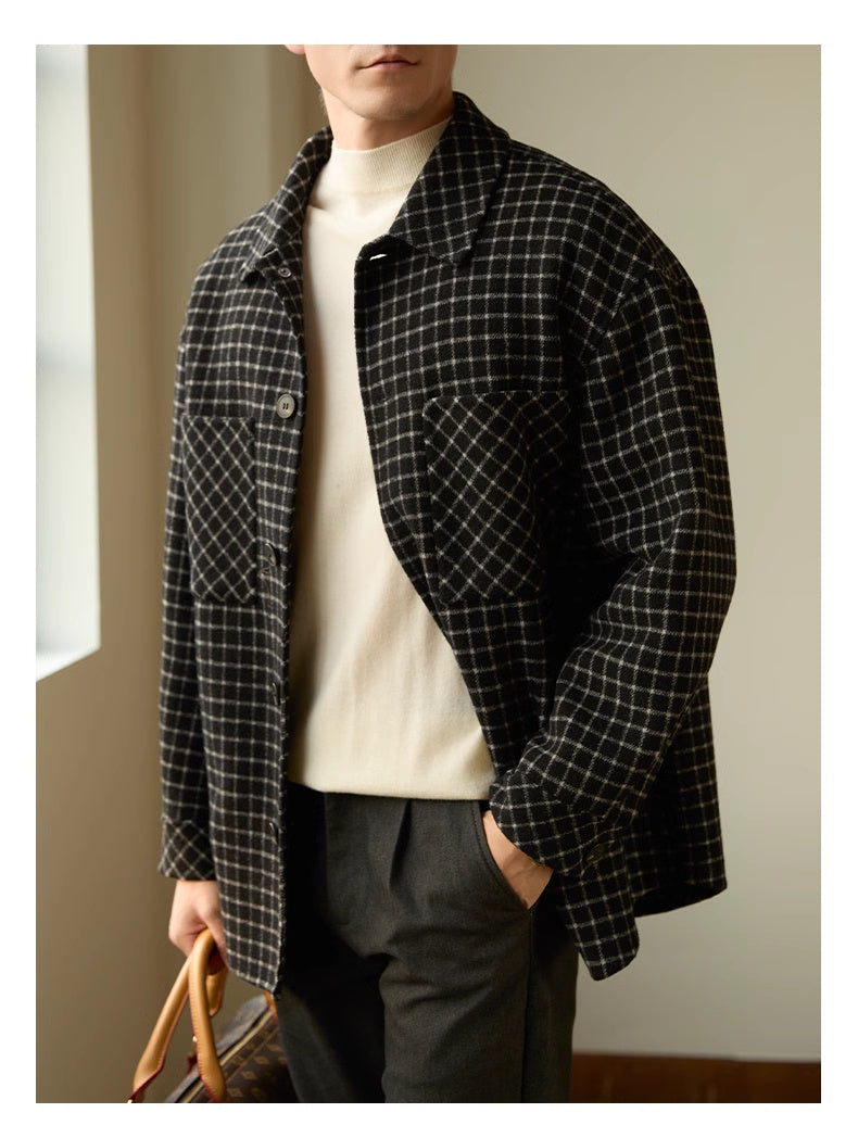Double-sided Woolen Houndstooth Design Coat Men's Casual