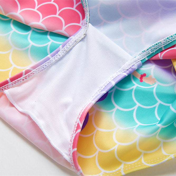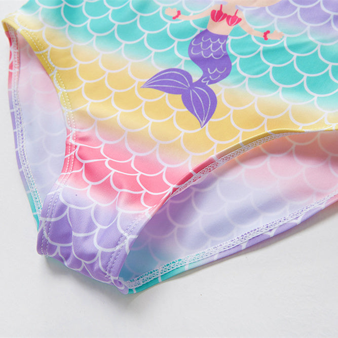 The playful cartoon pattern is small and fresh, embodying a whimsical, cheerful vibe that every young mermaid will love. Available in a variety of vibrant colors, this swimsuit is sure to be a favorite in their summer wardrobe.