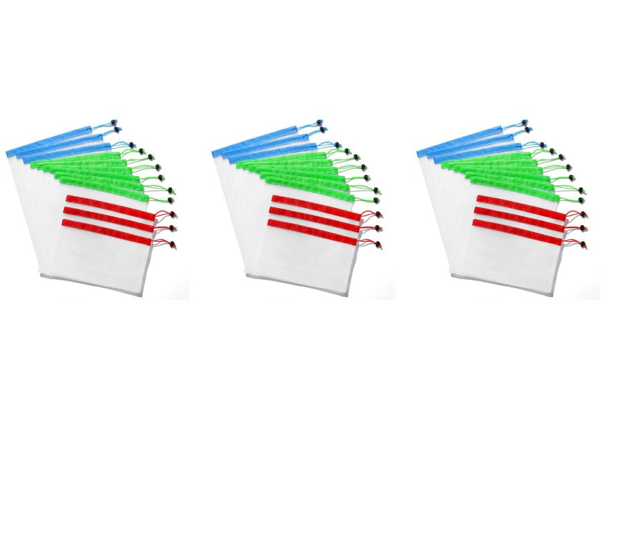 DURABLE:Made of strong, lightweight, easy-to-see-through mesh polyester,Plastic-free save the environment.CONVENIENCE:Drawstring and poplock for conventient opening and closing. Easily Portable, Trouble Free and Hassle Free when bringing these along on your next shopping trip. you can wash the produce directly in these bags and then place them straight into the fridge,less food wastedTransparent storage for travel items and almost any household item. Perfect for toys,fruit, coins, medicine, cables, cosmetics, accessories and much more. Use them to keep things together during grocery shopping,camping, fishing, garden harvest,beach and travels, etc.