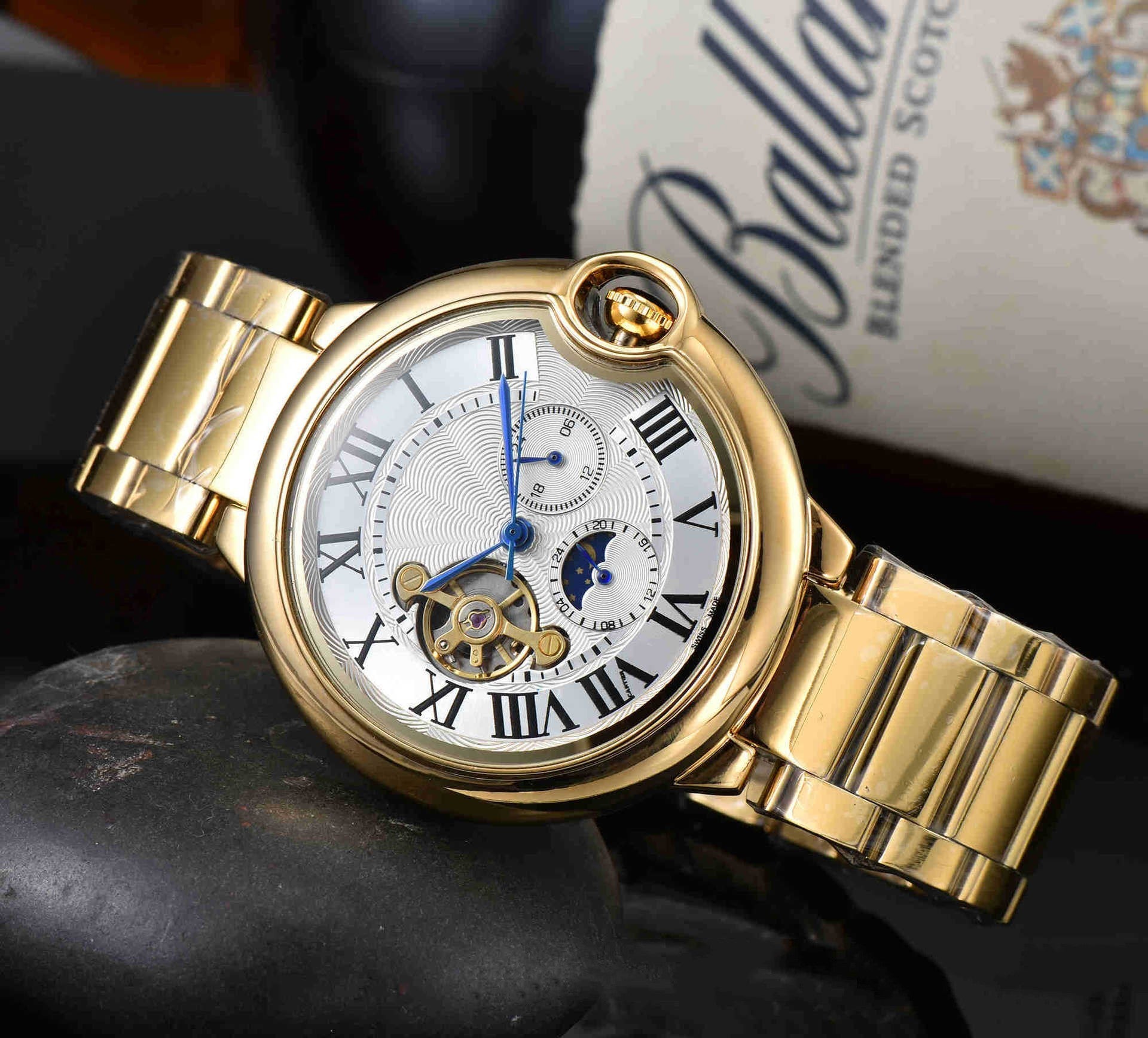 Introducing the Full-automatic Mechanical Large Flywheel Men's Watch, a perfect blend of style, utility, and sophistication. Tailored specifically for the modern man, this watch brings out an air of confidence while making a remarkable statement in any business environment. Its sleek design is complemented by advanced mechanical movement, delivering not just a timepiece but a true companion for your wrist.