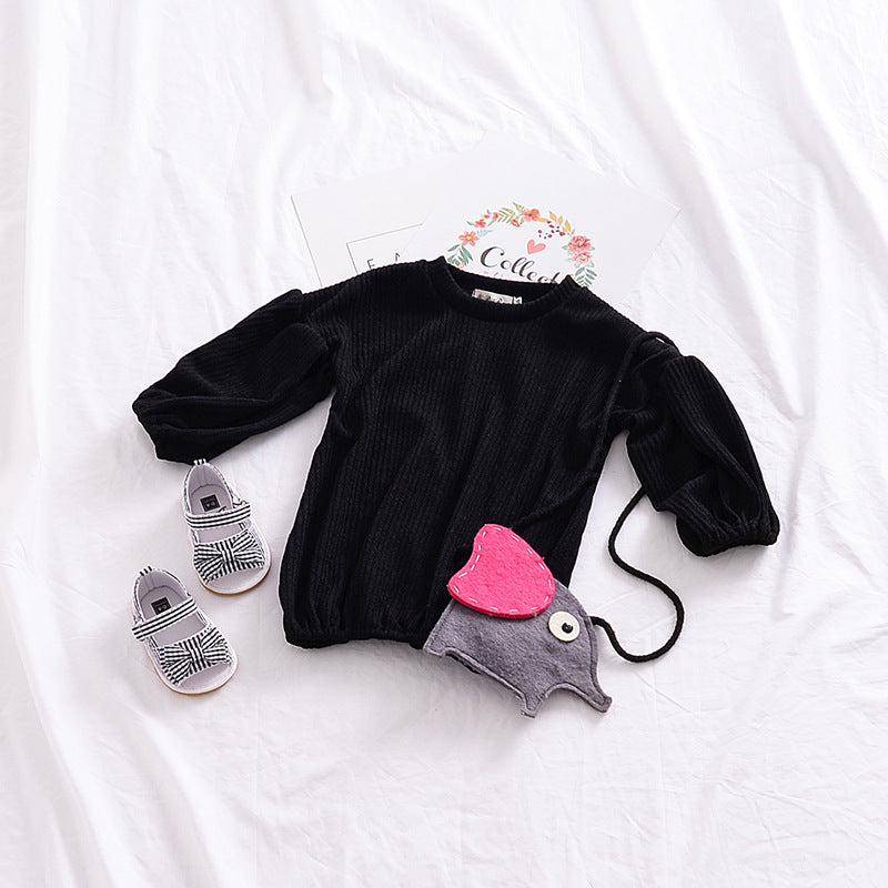 Girls Spring Lantern Sleeve Solid Color Kids T-shirt Top