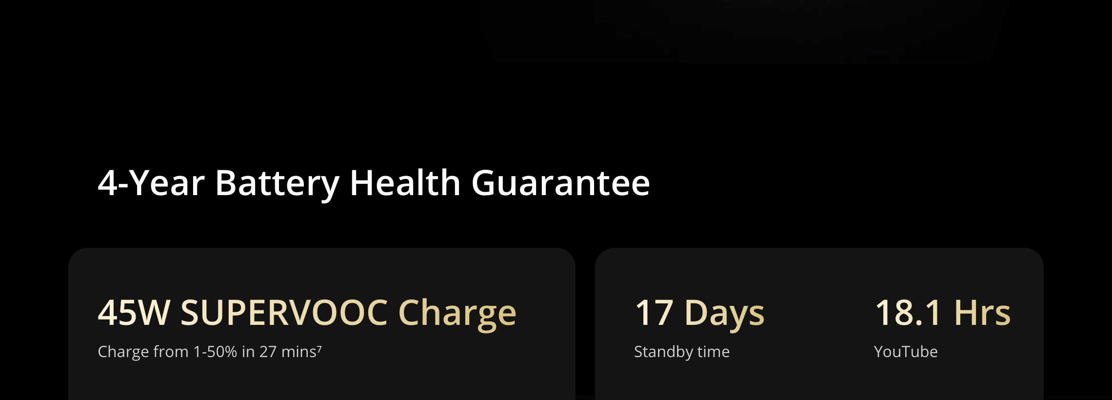 Battery----------45W SUPERVOOC Charge, 5200mAh Massive Battery