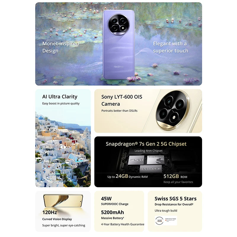 Global Version realme 13 Pro Smartphone Snapdragon 7s Gen 2 5G Chipset Sony LYT-600 OIS Camera 120Hz Curved Display AI Imaging