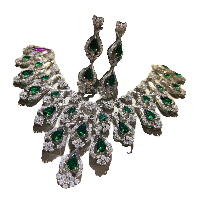 Introducing our exquisite Green Zircon Evening Dress Accessories Set, a perfect complement for your elegant ensemble. This stunning jewelry set features a dazzling necklace and matching earrings designed to enhance your style for any formal occasion. Whether you’re attending a wedding, prom, or gala, this accessory will leave a lasting impression.