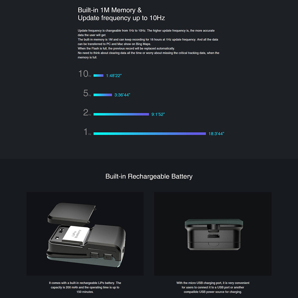 Built-in 200 mAh LiPo rechargeable battery (working time: 150 minutes);