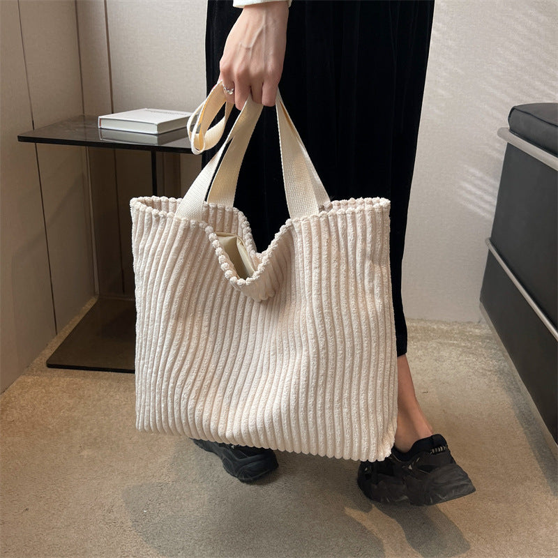 Elevate your everyday style with our Japanese & Korean College Style Corduroy Bag. This chic and versatile accessory is perfect for students and urban trendsetters alike. Made from soft corduroy, it combines comfort with an eye-catching design that’s sure to draw attention wherever you go. The bag is available in classic colors—black and white—allowing you to effortlessly match it with any outfit.