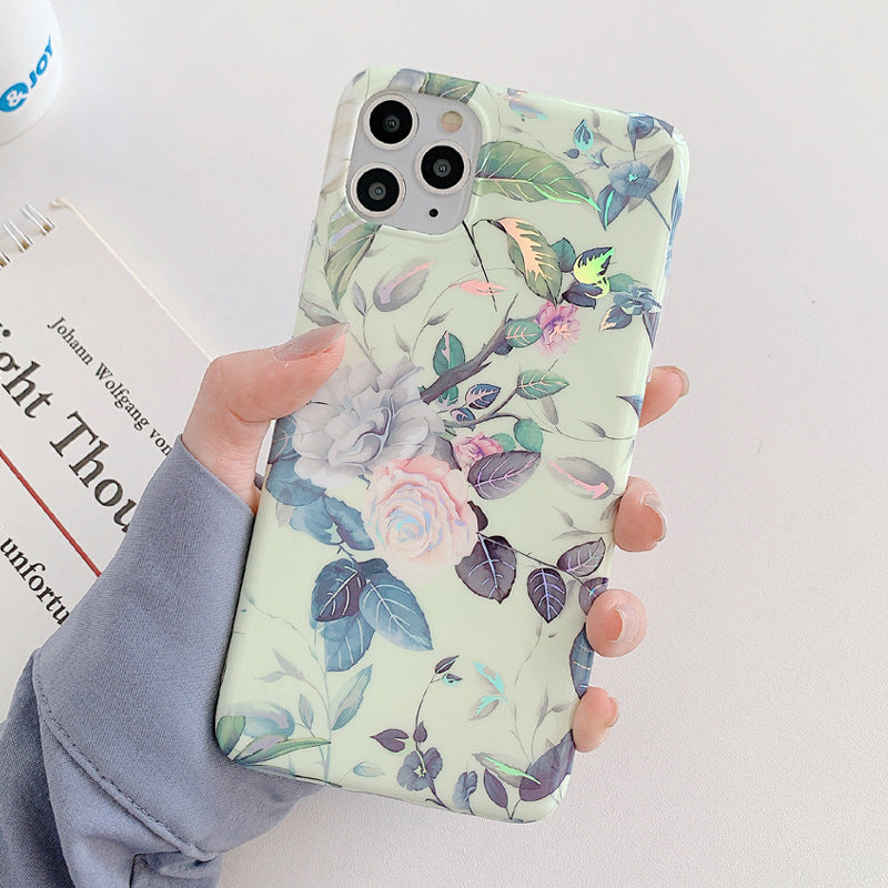 Color: Purple flowers on white, roses on light green, watercolor pink flowers on gray, banana leaves on light blue