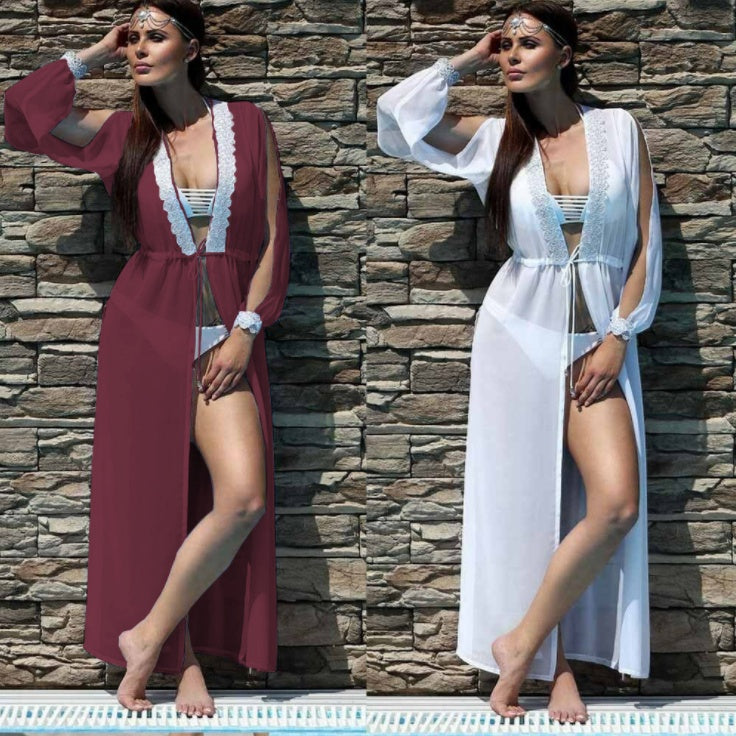 Discover the perfect blend of elegance and comfort with our Long Sleeve Lace Split Perspective Lace Up Blouse for Women. This captivating blouse is designed for modern women who appreciate style without sacrificing comfort. Made from high-quality knitted polyester fibers (81%-90% polyester), this blouse is lightweight, breathable, and perfect for any occasion.