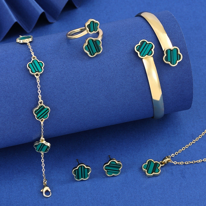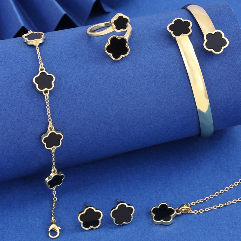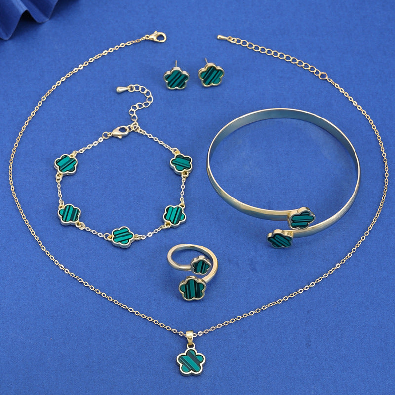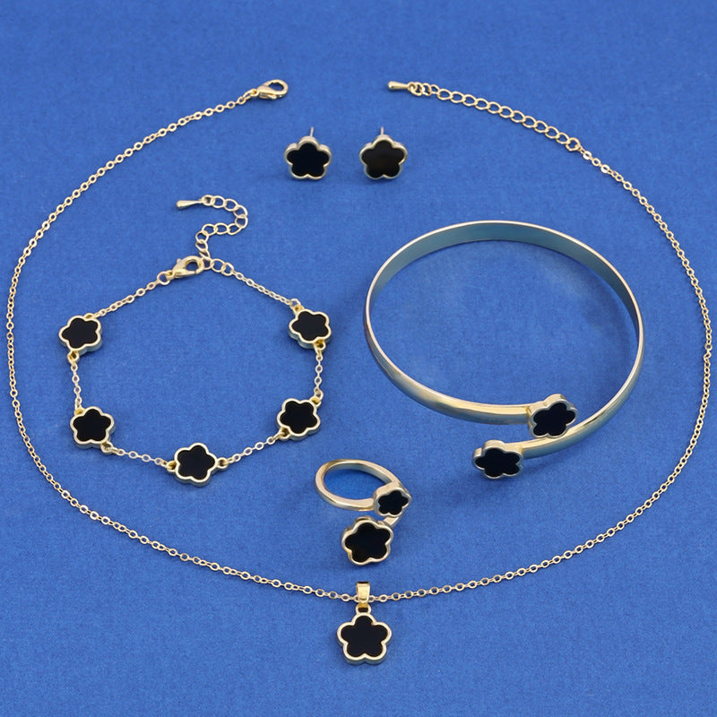 Introducing the stunning Lucky Five Petal Flower Five Leaves Flower Set, a delightful jewelry collection designed specifically for women who appreciate elegance and uniqueness. This exquisite collection features beautifully crafted pieces that will enhance any outfit, making you feel special every day.