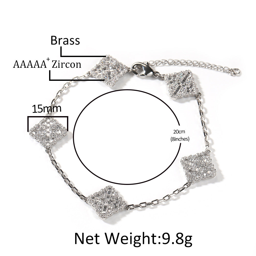 Four-Leaf Clover Copper Diamond Bracelet