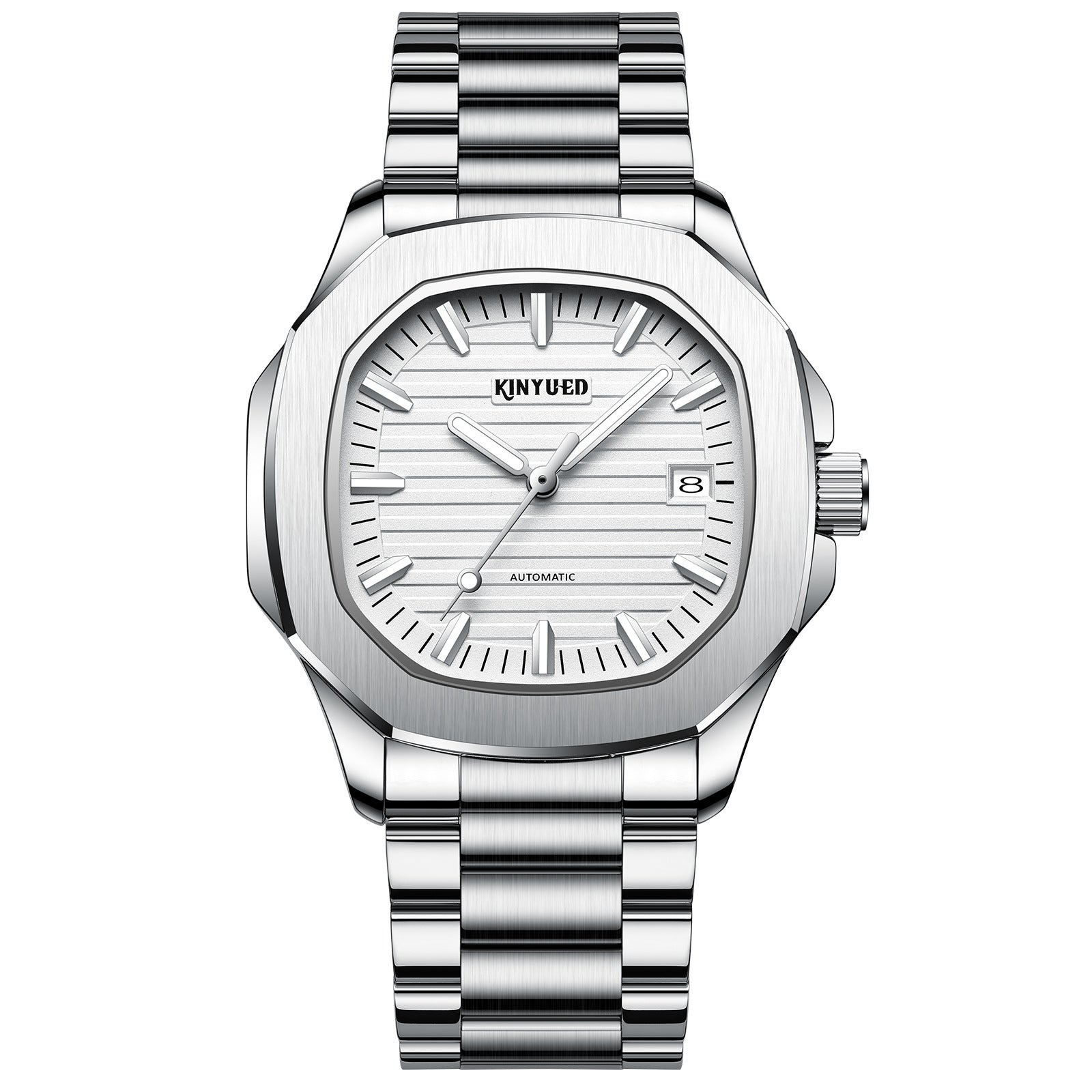 The watch is equipped with a flat top tapered crown and a transparent case back, allowing you to admire the intricate mechanics of your timepiece. The durable mineral reinforced glass mirror protects against scratches while ensuring optimal visibility of the luminous dial. The strap is made of high-quality stainless steel, ensuring both comfort and longevity.