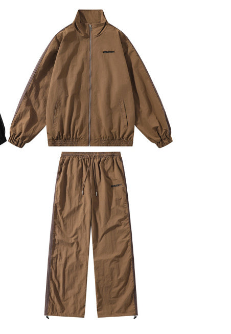 Men's Spring And Autumn Suit Sports Loose Casual Stand Collar Zipper Jacket Drawstring