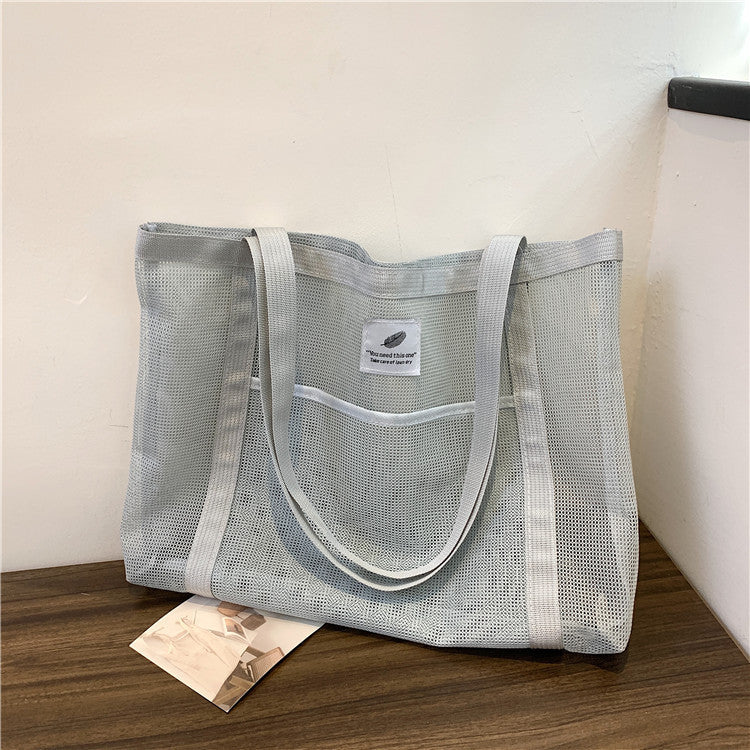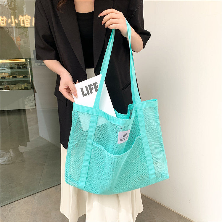 Whether you're dressing up for a casual day out or looking for a practical yet stylish bag to complement your daily outfit, the Transparent Mesh Shoulder Shopping Bag is a perfect choice. Its trendy design and practical features make it the ideal companion for any occasion.
