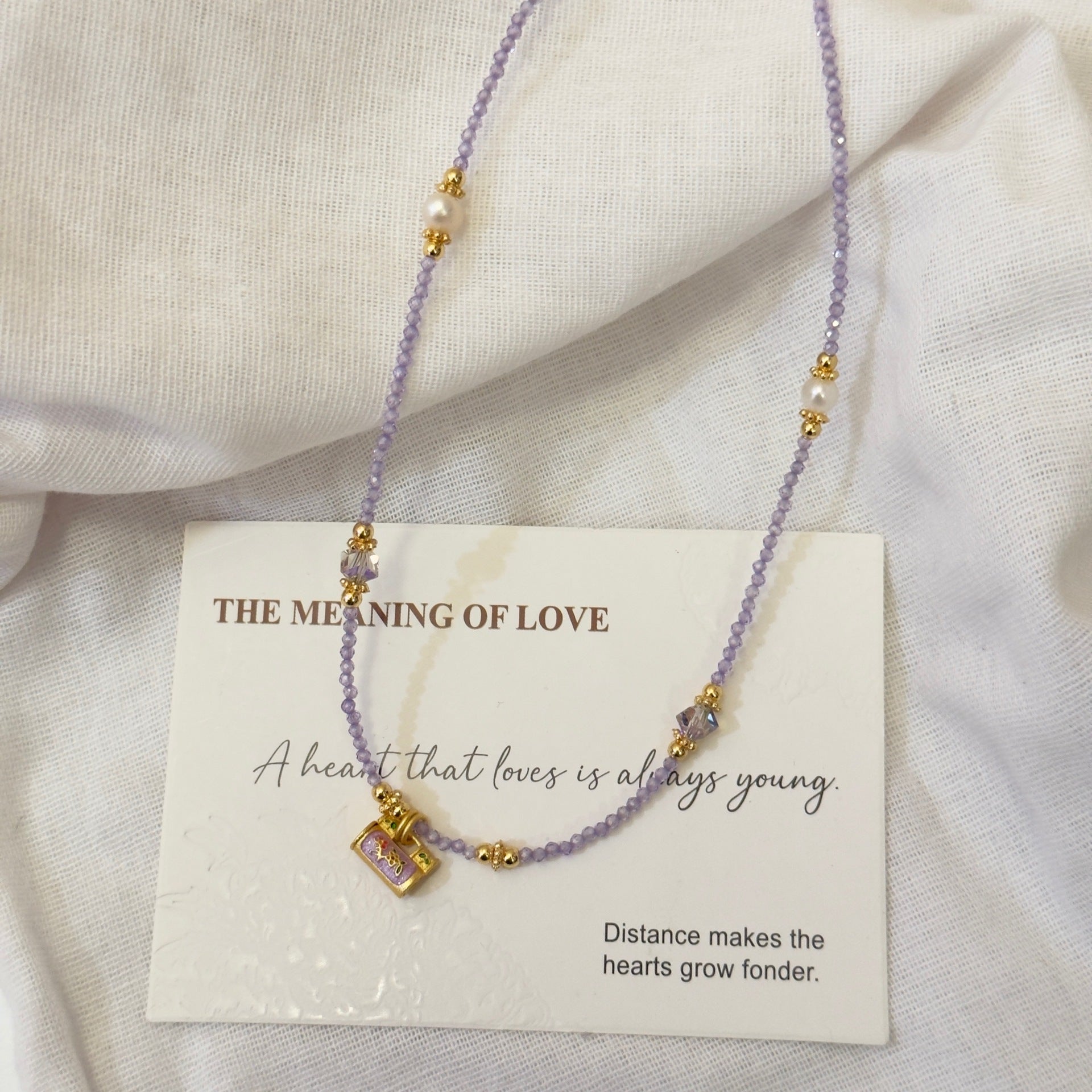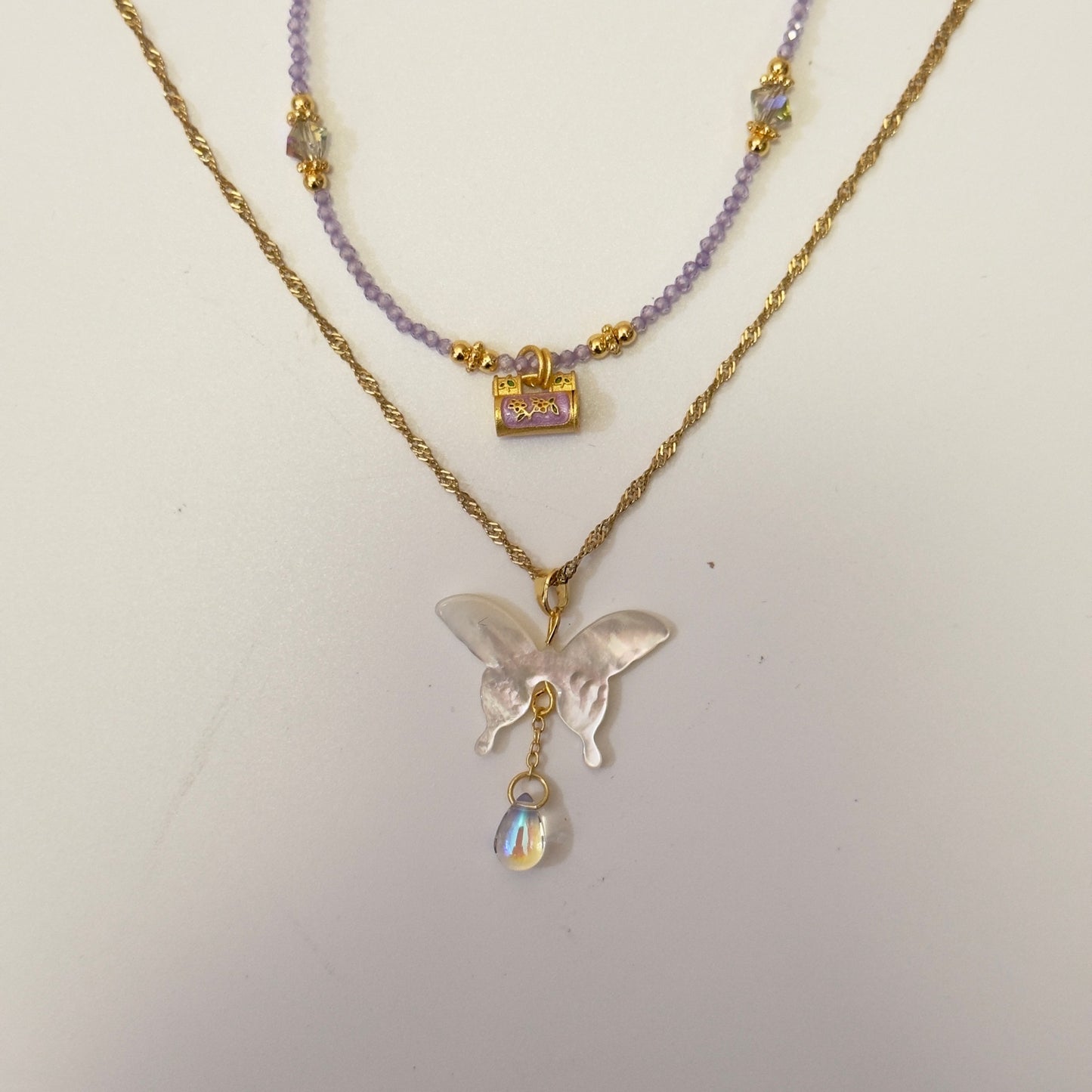 The necklace features a vibrant purple beaded lock head and an enchanting white shell butterfly that dances gracefully along the clavicle chain. The combination of colors creates a harmonious aesthetic that is both sweet and cool, making it an ideal choice for any occasion—from casual outings to special events.