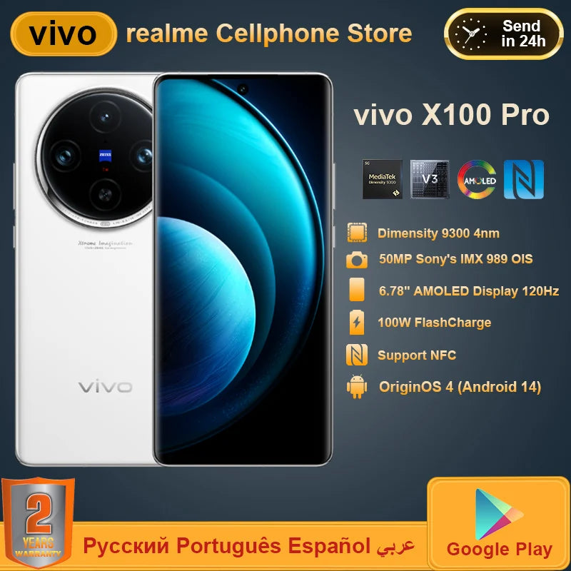 New Original VIVO X100 Pro 5G 6.78 Inches LTPO AMOLED Screen Dimensity 9300 Android 14 Camera 50MP 100W SuperCharge Smartphone