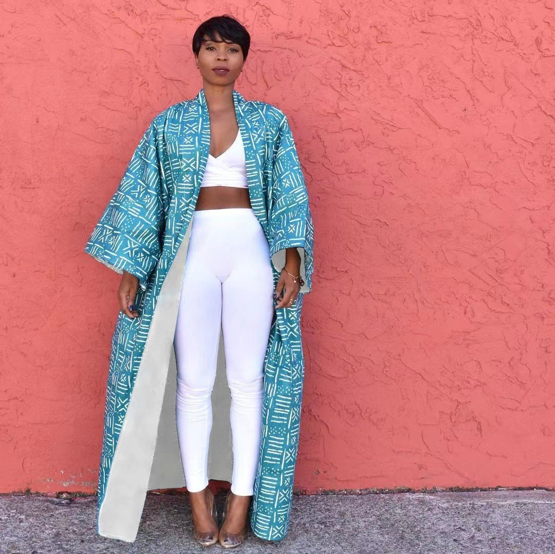 New Temperament Printed Outer All-matching Long Cardigan Baggy Coat