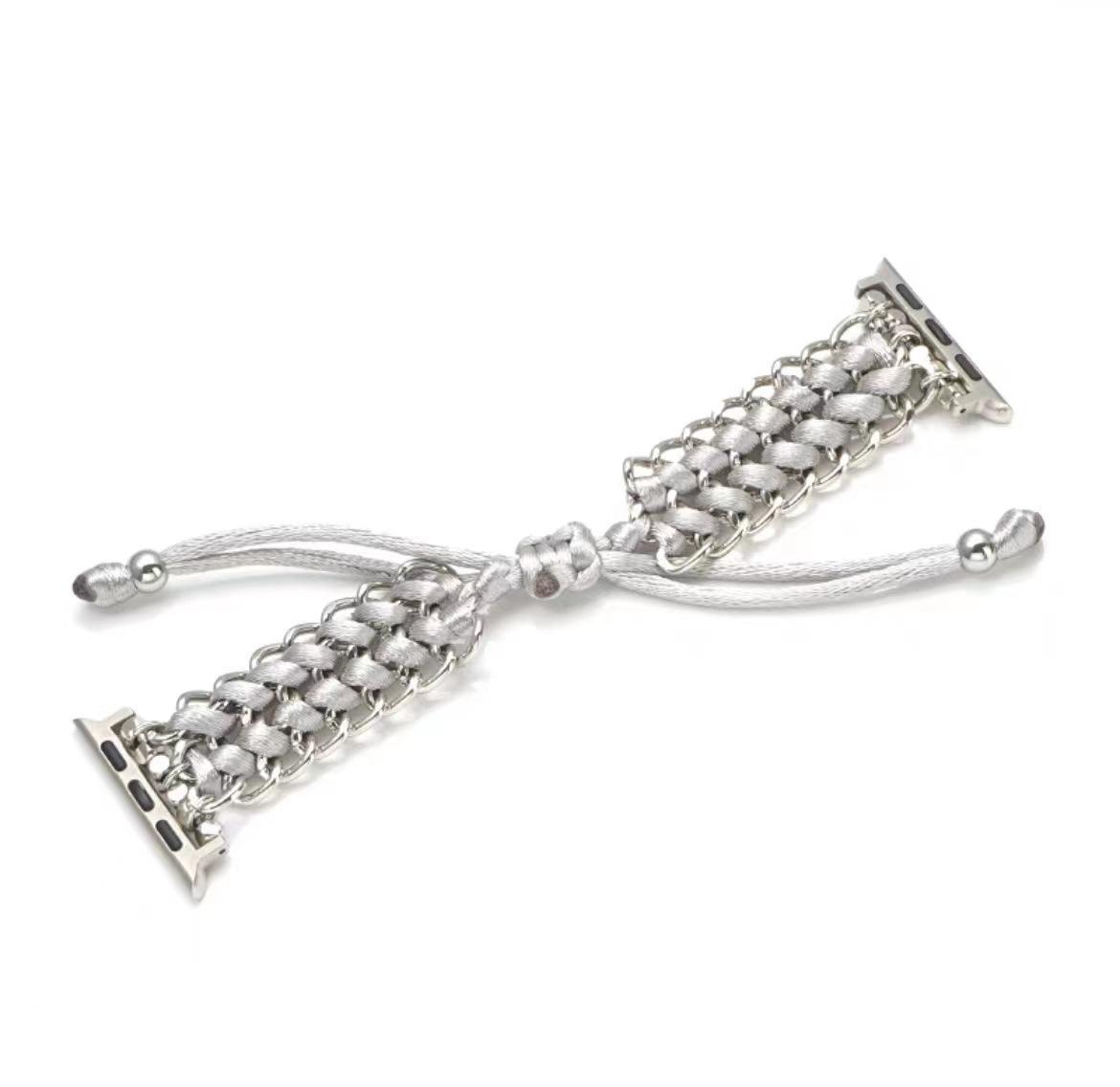 Discover our Nylon Watchband with a creative metal chain weave, the perfect accessory to elevate your style while keeping your Apple watch secure. With an array of vibrant color options, this watchband combines fashion with functionality. Choose from classic shades like silver gray, gold, and black, or go bold with our Z1 parachute rope varieties, including rainbow, army green, burgundy, and more! Each option allows you to express your unique personality and fit any occasion.