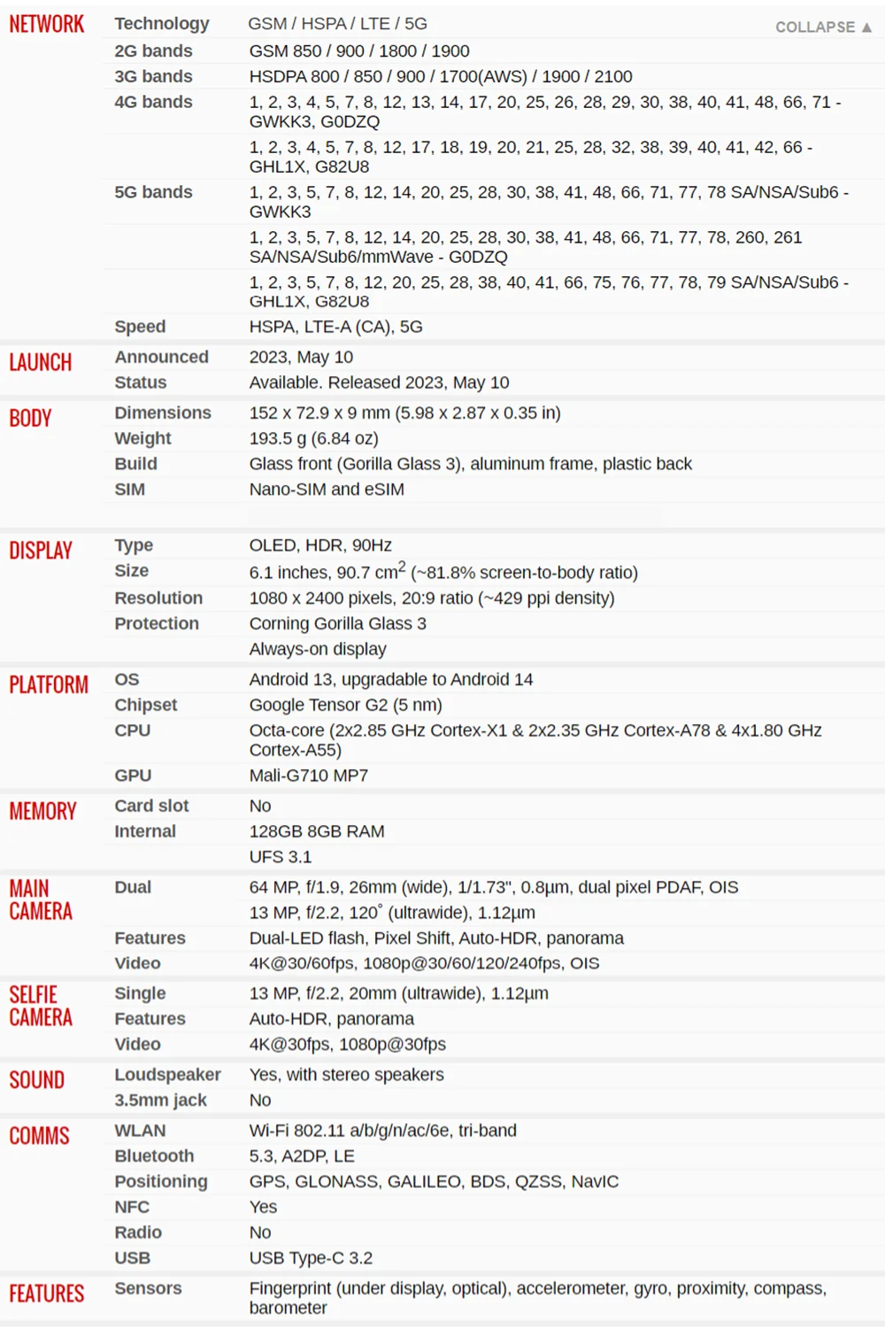 Original Google Pixel 7A Mobile Phone 8GB RAM 128GB ROM 6.1" NFC Octa Core Android Pixel 7A Phone