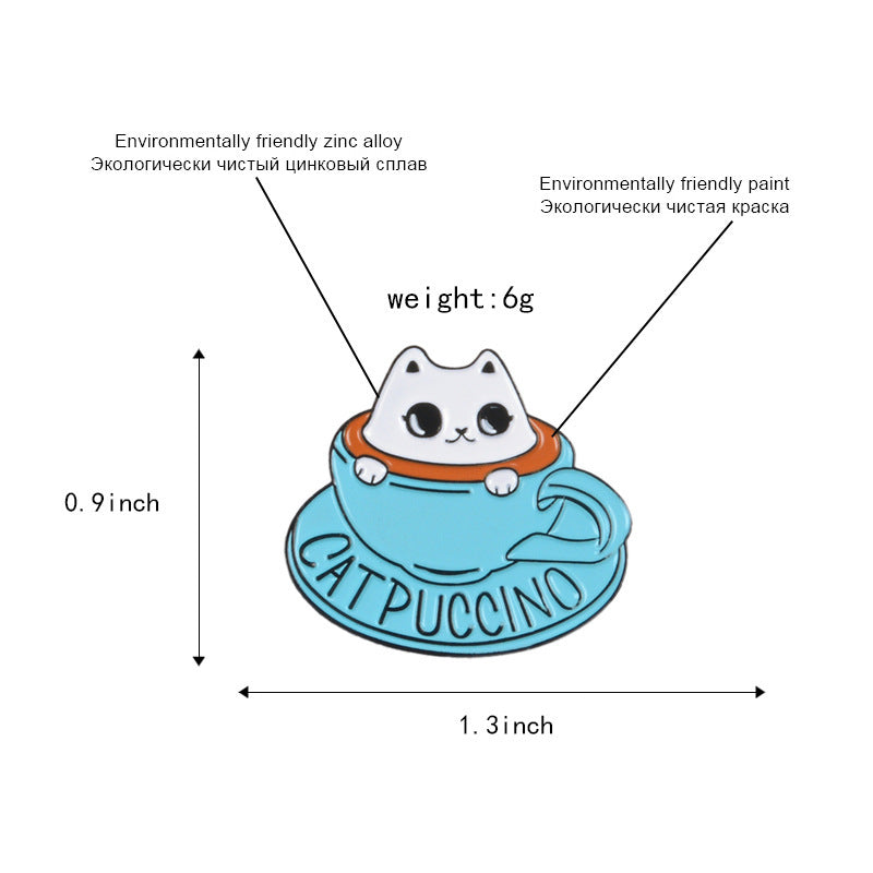 Embrace your love for felines and enhance your look with the Blue Teacup White Cat Coffee Brooch—your new favorite accessory!