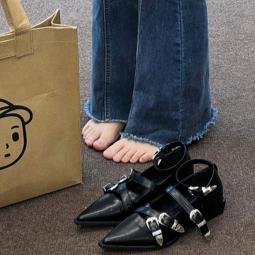 Pointed Toe Square Heel Cross Buckle Mary Janes