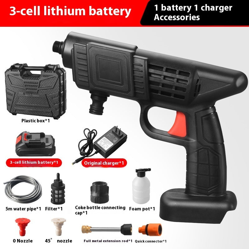 1 x washing machine gun,1 x lithium battery,1 x charger,1 x expansion tube,1 x 5M water pipe,1 x filter,2 x nozzle,1 x foam bottle