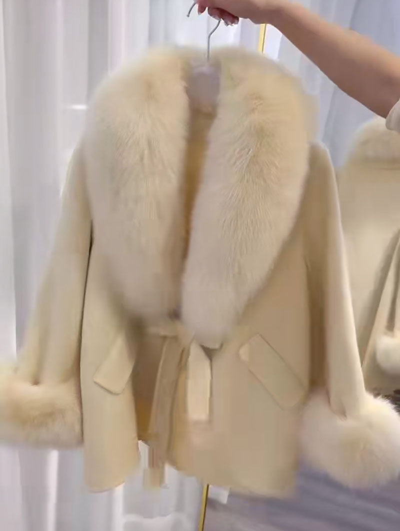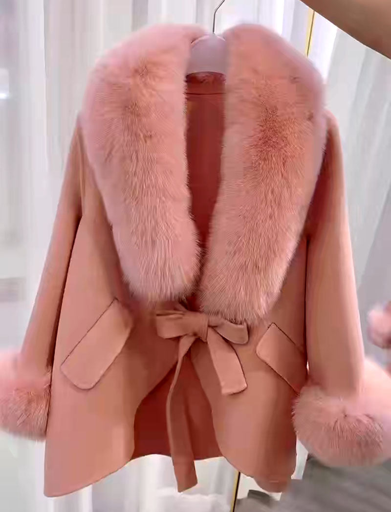 The Real Wool Woolen Cape features a loose fit that allows for easy layering over your favorite tops and dresses. Its long sleeve design keeps you warm, making it ideal for chilly days. The delightful fur collar adds a touch of elegance, elevating the overall look. Plus, the inclusion of pockets not only enhances its style factor but also offers practicality for storing small essentials.