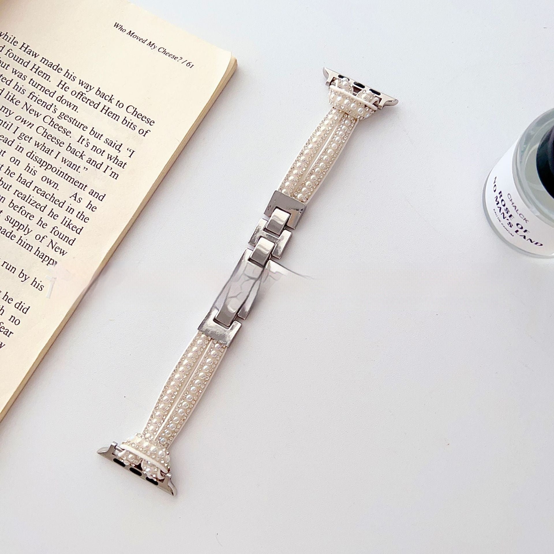Available in a range of colors, including classic White and bold Black, the Small Waist Pearl Chain Metal Strap offers flexibility for different styles. You can choose between sizes of 38/40/41mm and 42/44/45/49mm, ensuring there's a perfect fit for everyone. The versatile design allows for easy pairing with various outfits, from casual wear to sophisticated ensembles.