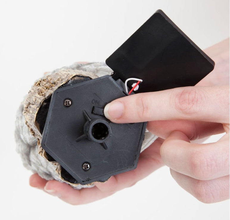 It is converted into electrical energy by the solar panel on the top, and the light during the day is converted into electrical energy by the solar panel and stored in the rechargeable battery. When it is dark at night (you can also block the solar panel with your hand, so you can enter the night mode), the solar panel can no longer When charging, the light will automatically light up. No connection cable or power supply, no installation, directly placed on the lawn, or hung on the tree to automatically charge during the day and automatically shine at night.