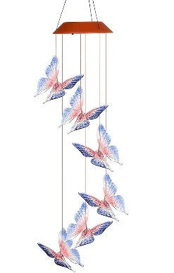 Solar Powered LED Wind Chime Light Hanging Color-Changing Yard Garden Butterfly Lamp Decor