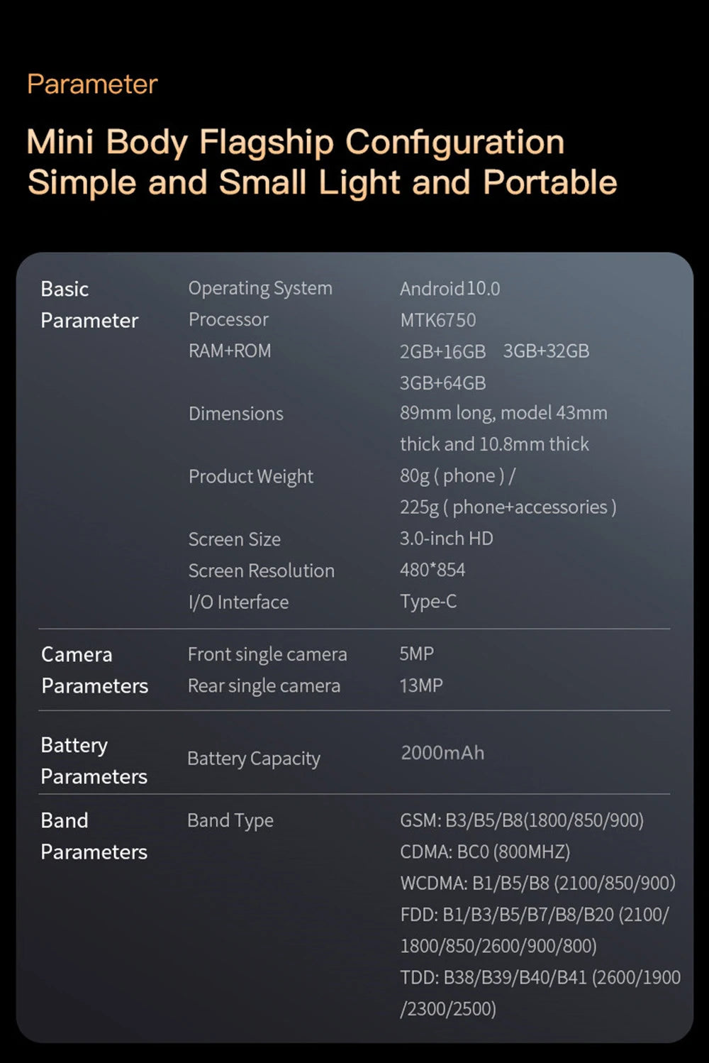 SOYES Android 10.0 Mini Smartphone 4G LTE Octa Core 13MP Camera 3.0'' Display OTG Cell Phone