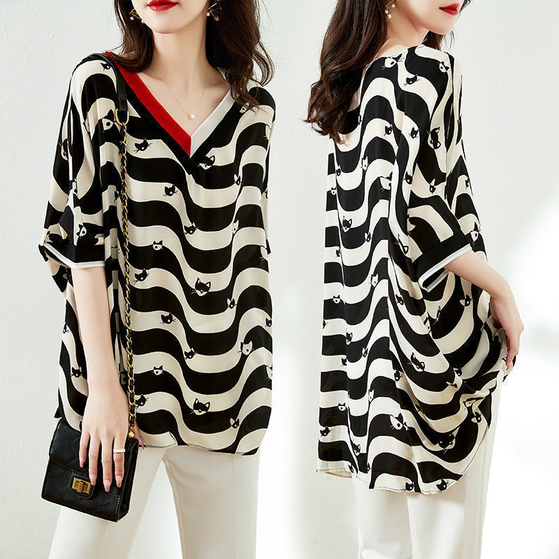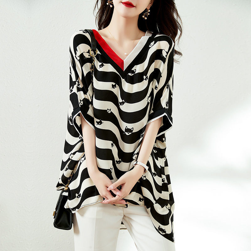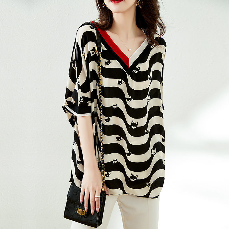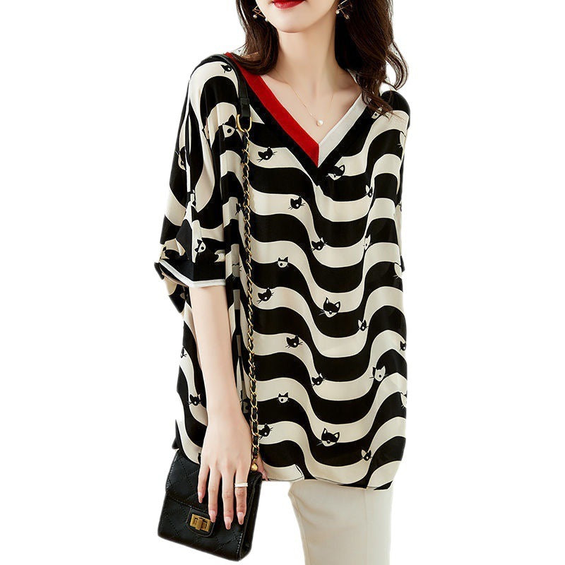 Striped Half Sleeve New Chiffon Shirt Women