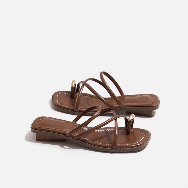 Summer New Versatile Fairy Style Toe Covering Casual Slippers
