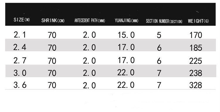 This telescopic fishing rod comes in multiple sizes to fit your personal style and fishing requirements. Choose between 2.1M, 2.4M, 2.7M, 3.0M, and 3.6M lengths. Each option is crafted to provide the optimal balance of strength and flexibility, ensuring that you can tackle any catch—big or small—with confidence.