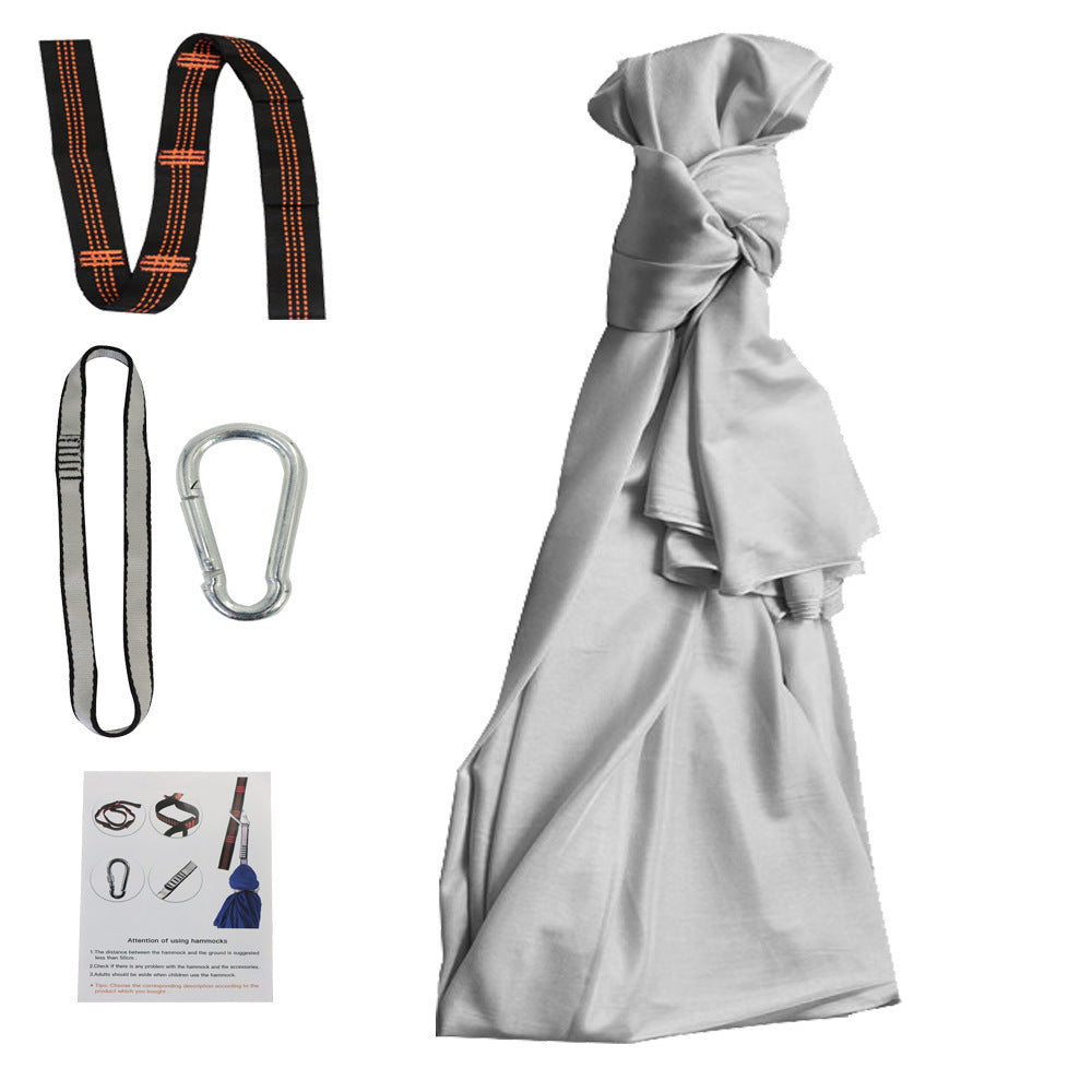 - [DURABLE & SAFE]: The therapy swing comes with silk Nylon hammock, 1 Multi-loop climber strength daisy chains, 1 safety carabiner with twist lock system and 1 connecting rope. The hardware and the accessories we provide are durable, whose max load-bearing capacity is up to 110 lbs (50 kg).